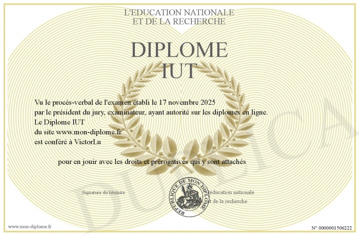Envoyez par email votre Diplôme IUT personalisé