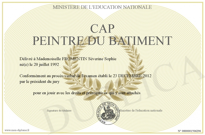 Envoyez par email votre CAP PEINTRE DU BATIMENT personalisé
