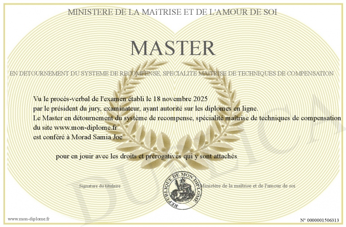 Envoyez par email votre Master en détournement du système de recompense, spécialité maîtrise de techniques de compensation personalisé