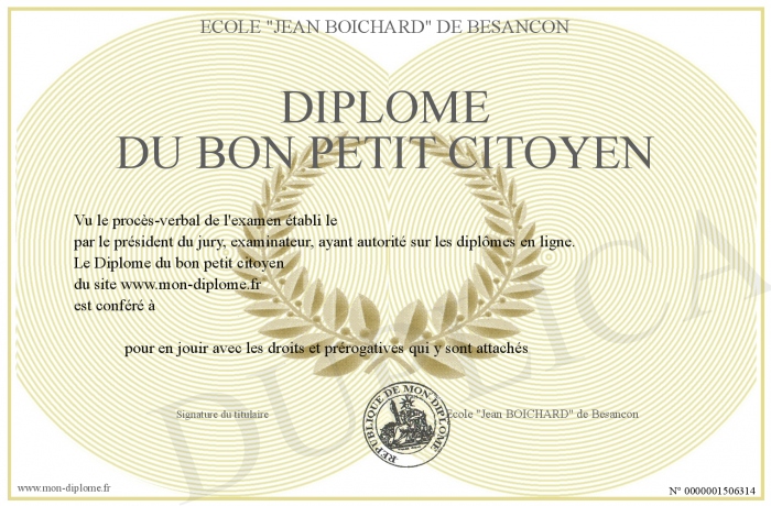 Envoyez par email votre Diplôme du bon petit citoyen personalisé