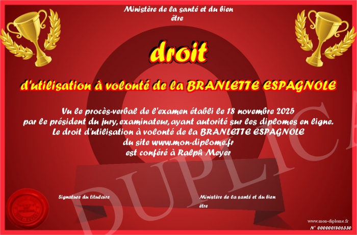 Envoyez par email votre droit d'utilisation à volonté de la BRANLETTE ESPAGNOLE personalisé