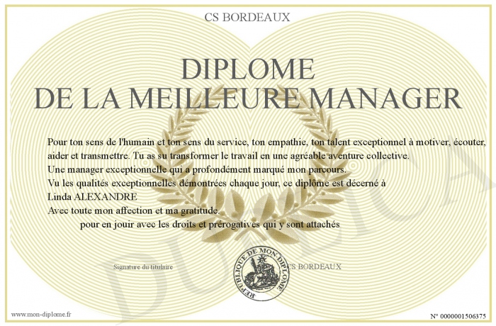 Envoyez par email votre Diplome de la meilleure manager personalisé