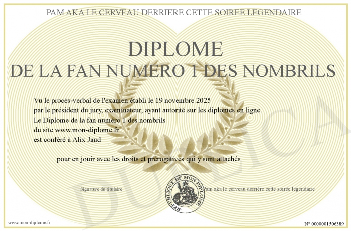 Envoyez par email votre Diplôme de la fan numéro 1 des nombrils personalisé