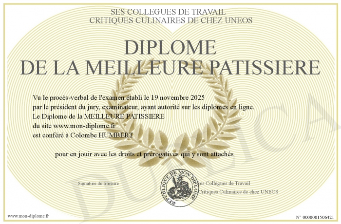 Envoyez par email votre Diplôme de la MEILLEURE PATISSIERE personalisé