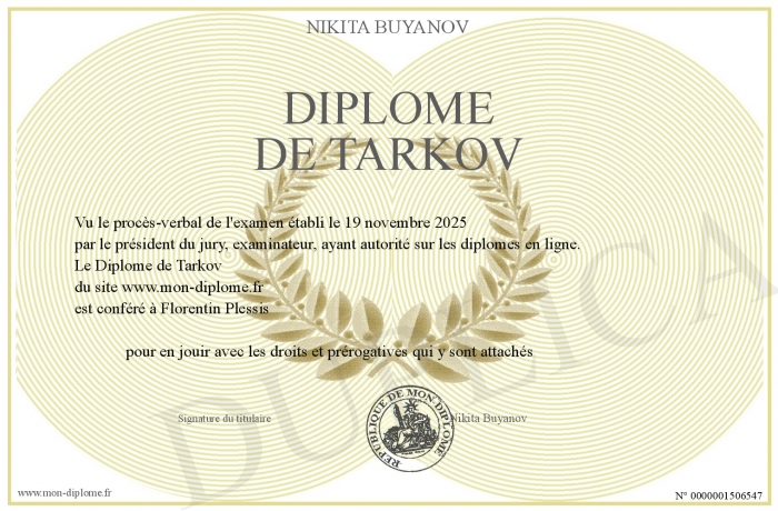 Envoyez par email votre Diplôme de Tarkov personalisé