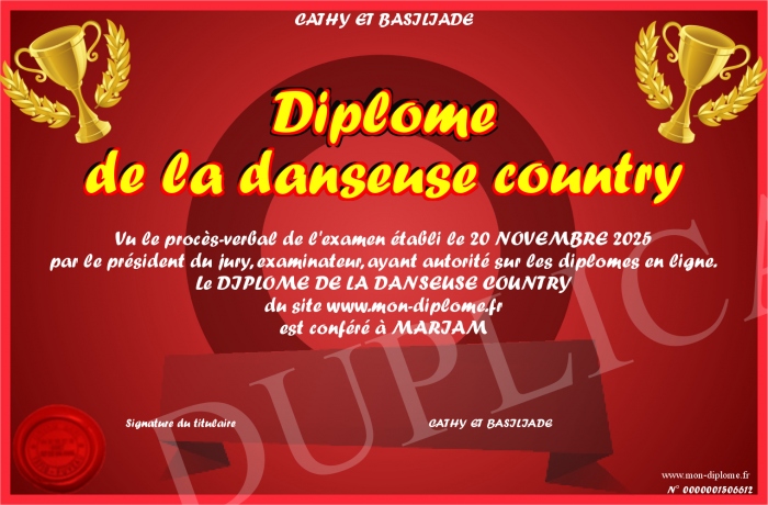Envoyez par email votre Diplôme de la danseuse country personalisé
