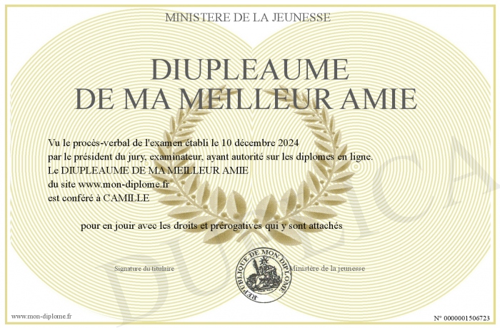 Envoyez par email votre DIUPLEAUME DE MA MEILLEUR AMIE personalisé
