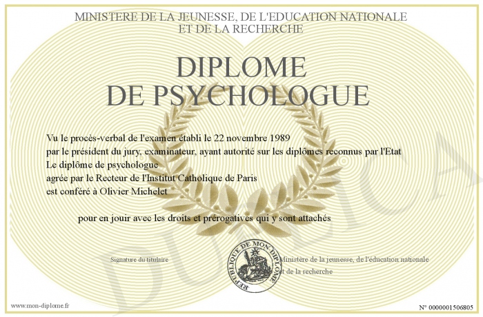 • Diplôme de psychologue