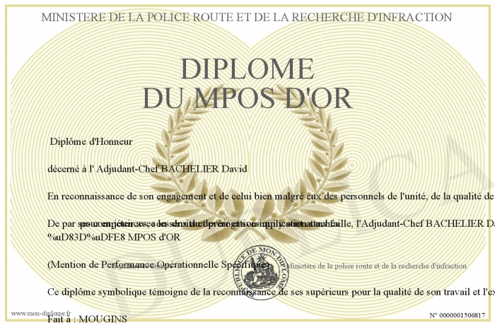 Envoyez par email votre Diplôme du MPOS d'OR personalisé