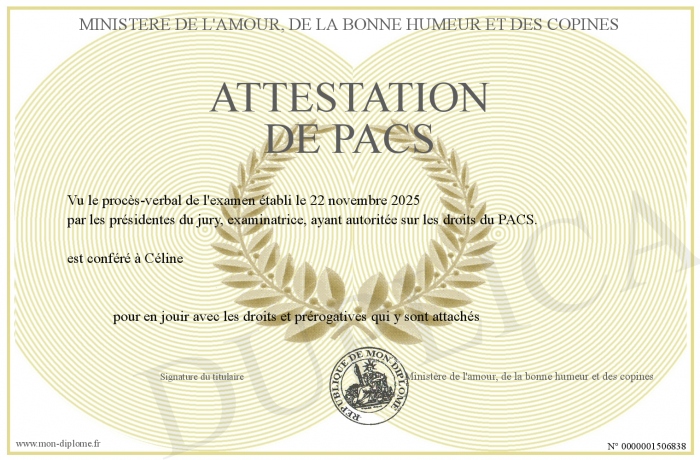 Envoyez par email votre ATTESTATION DE PACS personalisé