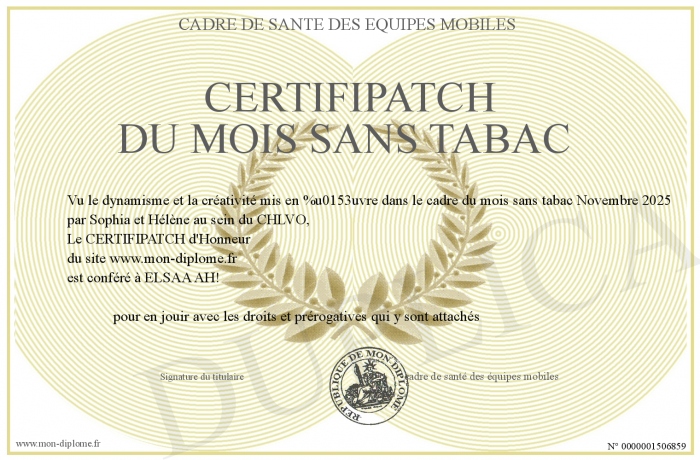 Envoyez par email votre CERTIFIPATCH du mois sans tabac personalisé