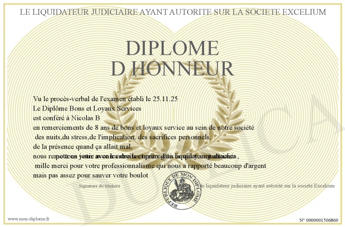 envoyé par le le liquidateur judiciaire ayant autorité sur la société Excelium !
