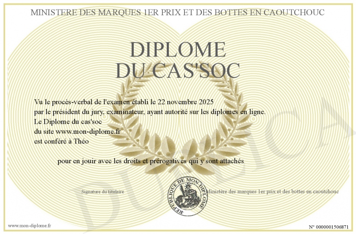 Envoyez par email votre Diplôme du cas'soc personalisé