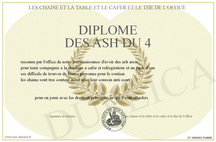 Envoyez par email votre Diplôme des ash du 4 personalisé