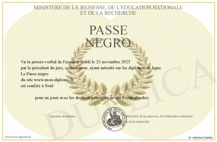 Envoyez par email votre Passe négro personalisé