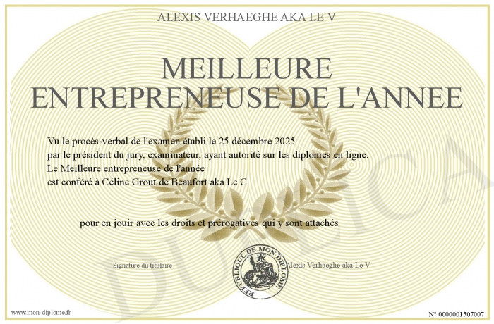 Envoyez par email votre Meilleure entrepreneuse de l'année personalisé