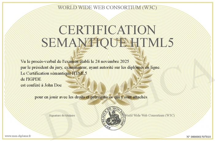 Envoyez par email votre Certification sémantique HTML5 personalisé