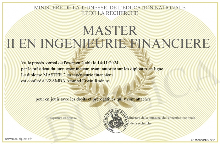 Envoyez par email votre MASTER II en ingénieurie financière personalisé
