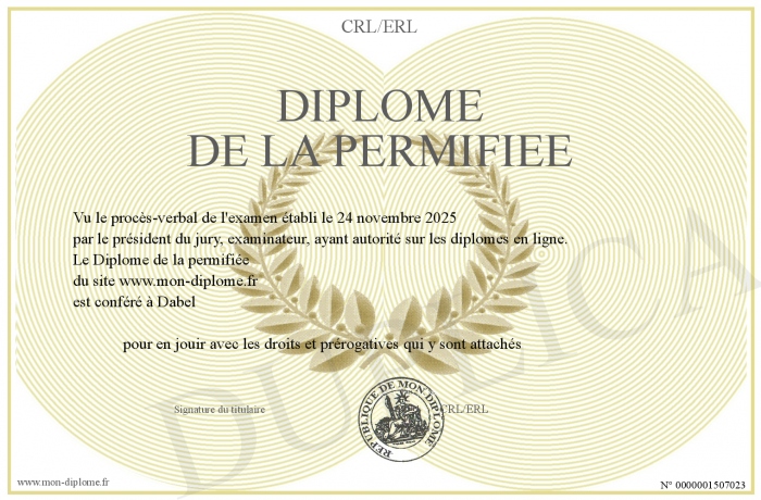 Envoyez par email votre Diplôme de la permifiée personalisé