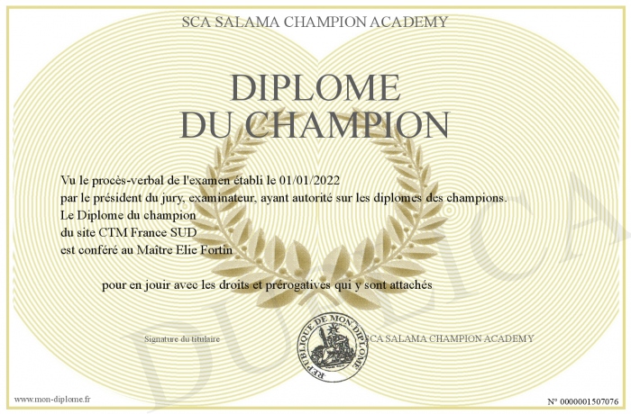 Envoyez par email votre Diplôme du champion personalisé