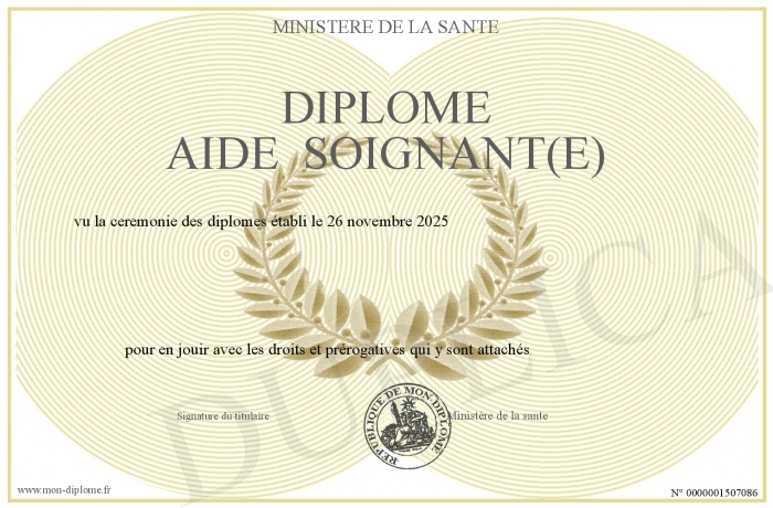 Envoyez par email votre Diplôme aide soignant(e) personalisé