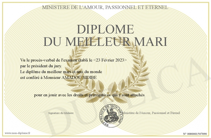 Envoyez par email votre Diplôme du meilleur mari personalisé