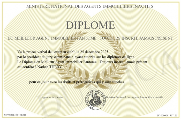 Envoyez par email votre Diplome du Meilleur Agent Immobilier Fantôme : Toujours inscrit, jamais présent personalisé