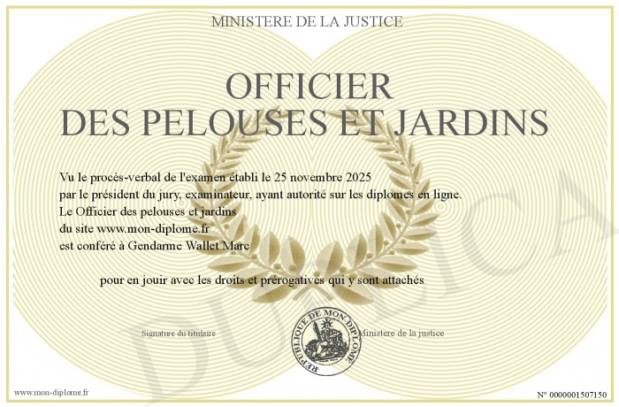 Envoyez par email votre Officier des pelouses et jardins personalisé