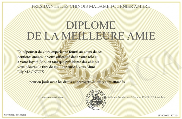 Envoyez par email votre Diplome de la meilleure Amie personalisé