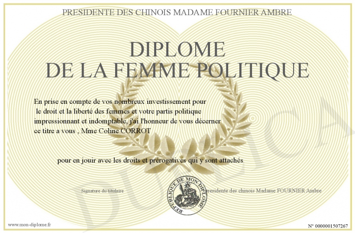 Envoyez par email votre Diplôme de la femme politique personalisé