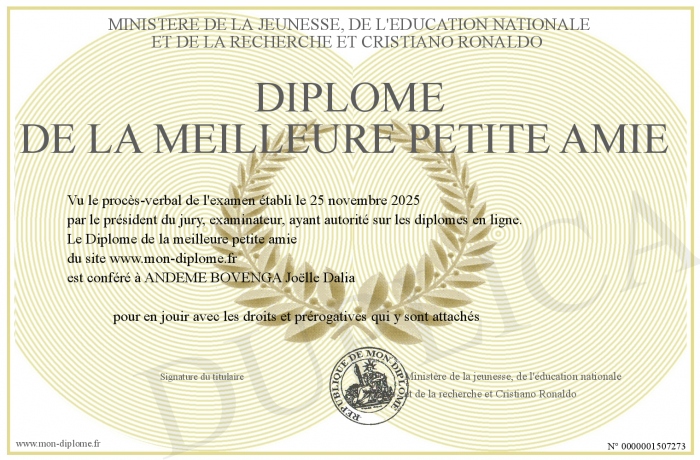 Envoyez par email votre Diplôme de la meilleure petite amie personalisé