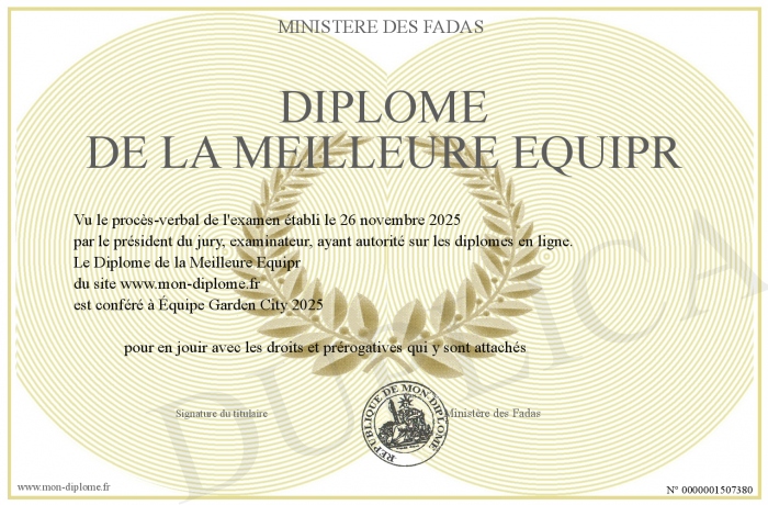 Envoyez par email votre Diplôme de la Meilleure Equipr personalisé