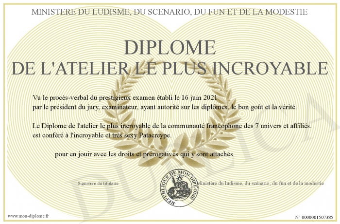 Envoyez par email votre Diplôme de l'atelier le plus incroyable personalisé