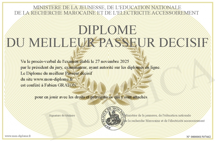 Envoyez par email votre Diplôme du meilleur Passeur décisif personalisé