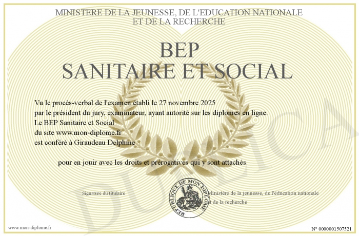 Envoyez par email votre BEP Sanitaire et Social personalisé