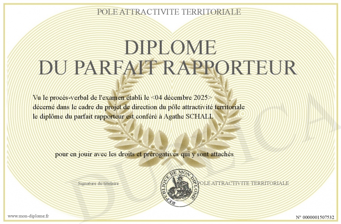 Envoyez par email votre Diplôme du Parfait Rapporteur personalisé