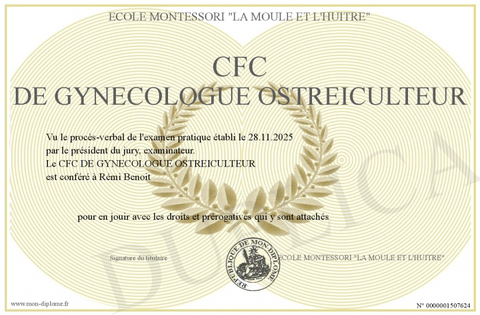 Envoyez par email votre CFC DE GYNECOLOGUE OSTREICULTEUR personalisé