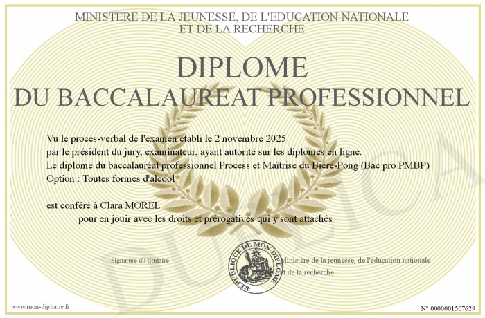 Envoyez par email votre diplôme du baccalauréat professionnel personalisé