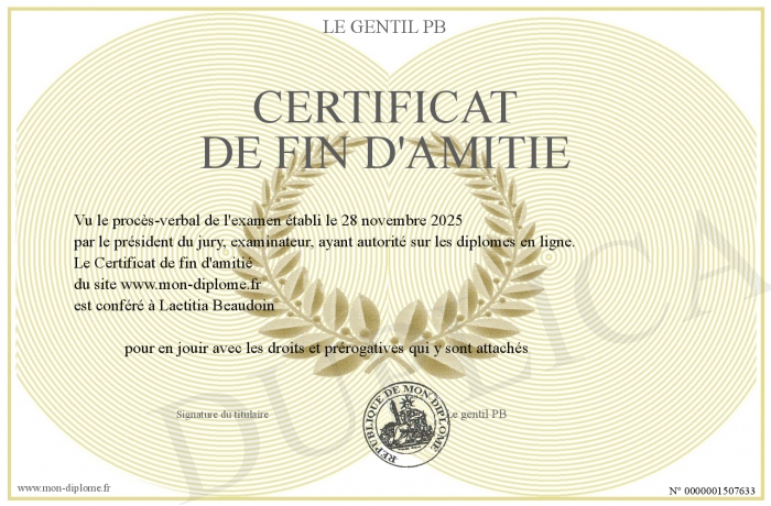 Envoyez par email votre Certificat de fin d'amitié personalisé