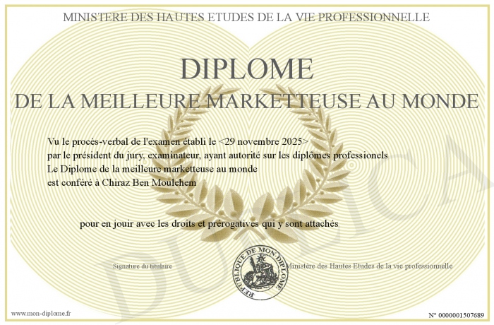 Envoyez par email votre Diplôme de la meilleure marketteuse au monde personalisé