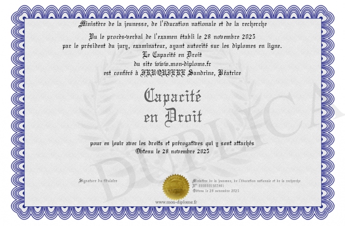 Envoyez par email votre Capacité en Droit personalisé