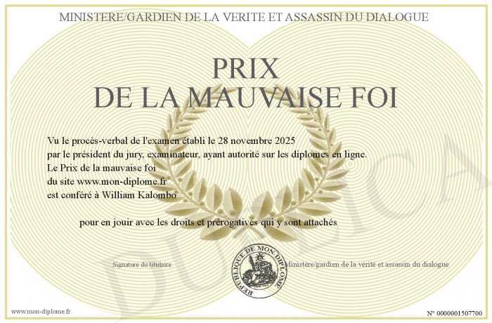 Envoyez par email votre Prix de la mauvaise foi personalisé