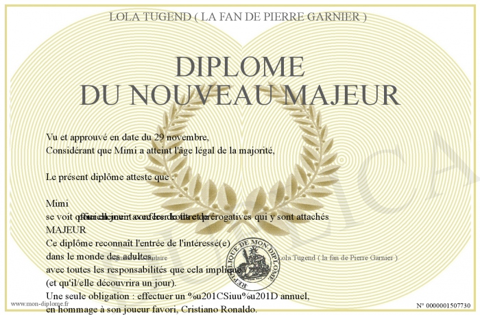 Envoyez par email votre diplôme du nouveau majeur personalisé