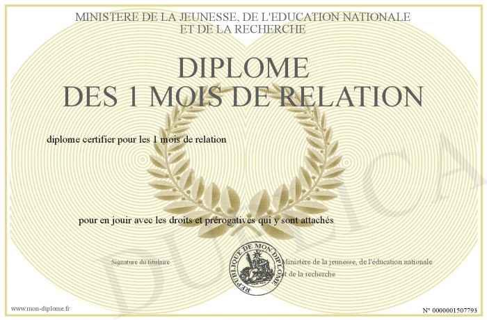 Envoyez par email votre Diplôme des 1 mois de relation personalisé