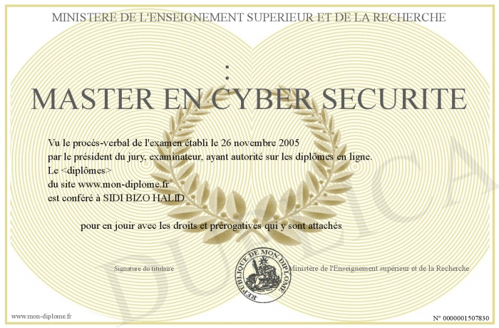 Envoyez par email votre : Master en cyber sécurité personalisé