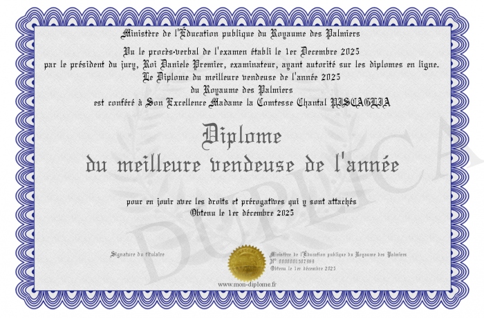 Envoyez par email votre Diplôme du meilleure vendeuse de l'année personalisé