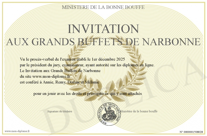 Envoyez par email votre Invitation aux Grands Buffets de Narbonne personalisé