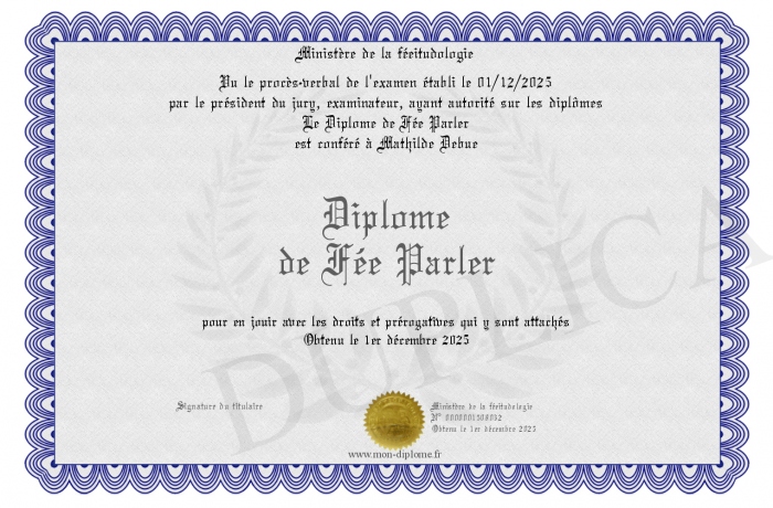 Envoyez par email votre Diplôme de Fée Parler personalisé