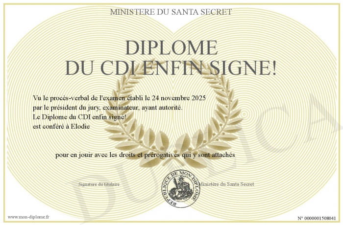Envoyez par email votre Diplôme du CDI enfin signé! personalisé