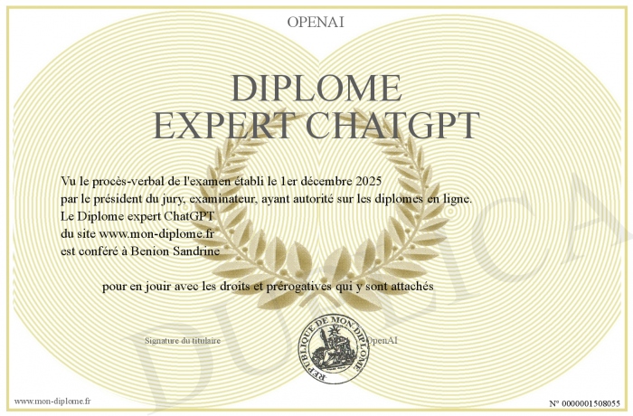 Envoyez par email votre Diplome expert ChatGPT personalisé